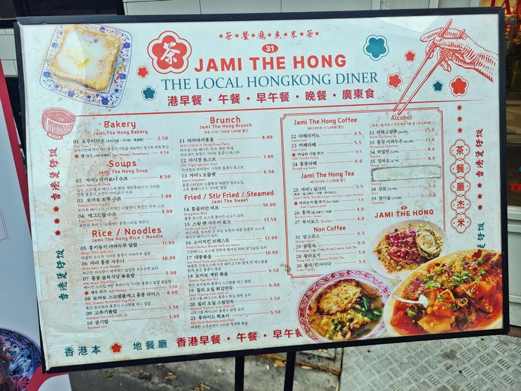 메뉴. 몽골리안 비프, 대롱볶음, 야시장 토스트, 토마토 스크렘블 에그 홍콩 라이스, 홍콩 골목식당 볶음밥, 소이치킨 브레스드와 토마토 계란 볶음 등 다양한 홍콩식 중국 요리를 판매하고 있다. 홍콩 요리 자체가 중국 요리에서 파생된 것이기 때문에 중국 요리와 거의 흡사하다고 보면 된다. 요리 주점을 표방하고 있기 때문에 커피, 주스, 탄산 음료 외에 연태고량주, 하얼빈과 칭따오 등 주류도 판매하고 있다.