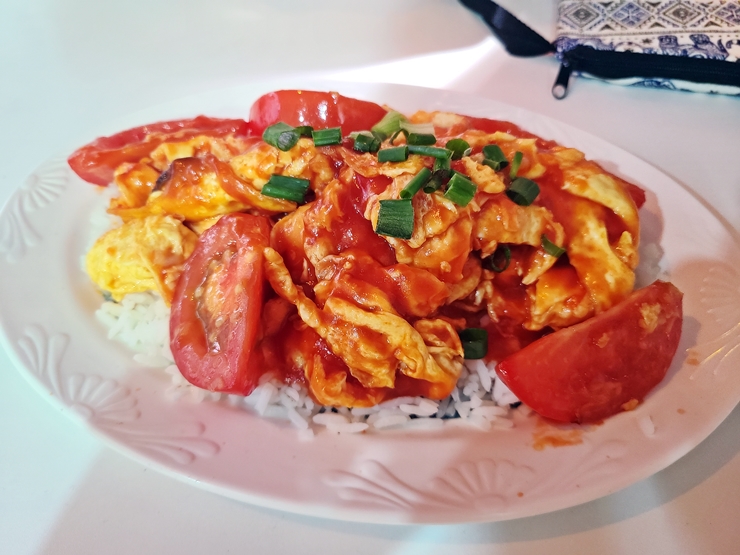토마토 홍콩 라이스. 토마토 계란 볶음밥에 케첩이 추가된 것이다. 토마토와 케첩은 감칠맛이 굉장히 강한 식재료인데, 감칠맛과 감칠맛이 합쳐지니 과할 정도로 대단한 감칠맛이 느껴졌다. 토마토 소스의 양을 좀 줄이면 밸런스가 잘 맞을 거 같다. 쌀은 일반 쌀이라 불리는 자포니카 종이 아닌 안남미라 불리는 인디카 종을 사용했는데, 이질감 없이 잘 어울렸다.