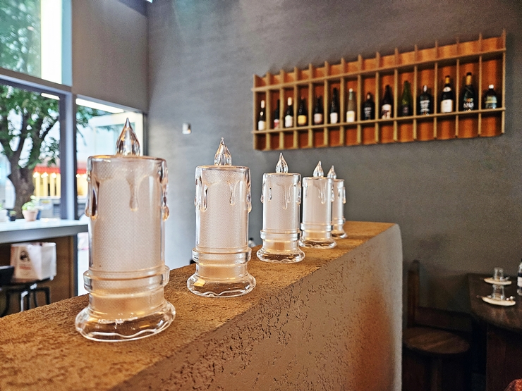상호는 완벽한 이자카야인데 내부는 이자캬야 모습과는 거리가 좀 멀고 모던한 느낌이 물씬 난다. 다이닝 바라는 것을 잘 느낄 수 있게 다양한 와인 공병을 내부 인테리어로 활용했다. 해가 길어진 여름이라 퇴근 시간에 방문했을 땐 밝았는데, 해가 지고 좀 어두워지니 은은하게 무드 있는 분위기가 연출 되었다.