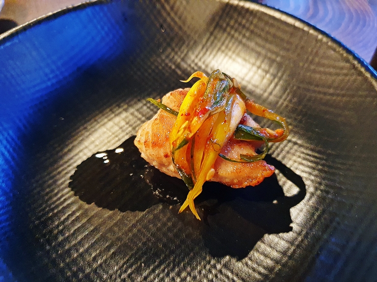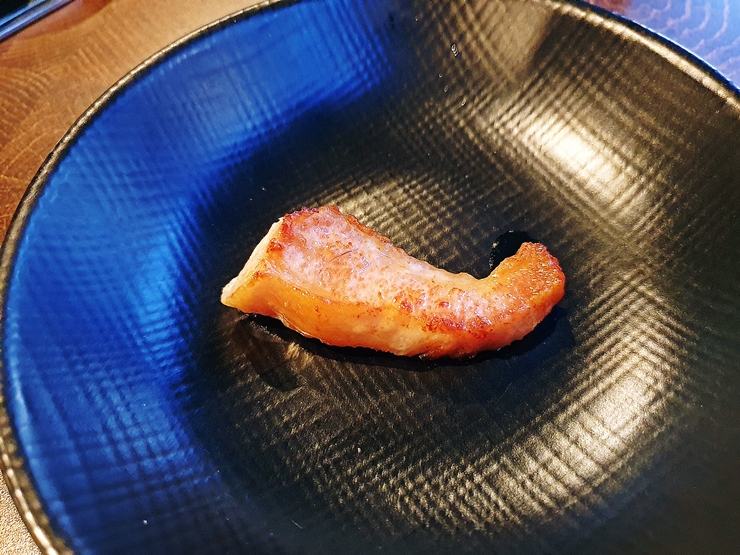 반찬. 백김치, 명이나물, 쌈장, 와사비, 파김치와 파절이가 나온다. 파절이가 상당히 맛있어서 각자 먹기로 결심한 후 더 달라고 요청을 했다. 파절이만큼은 아니지만 파김치도 상당히 맛이 좋아서 계속해서 먹었지. 예전에는 파김치를 주는 곳이 드물었는데 요새는 파김치 나오는 곳이 상당히 많아져서 좋다.