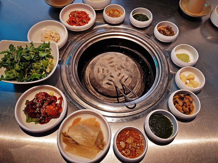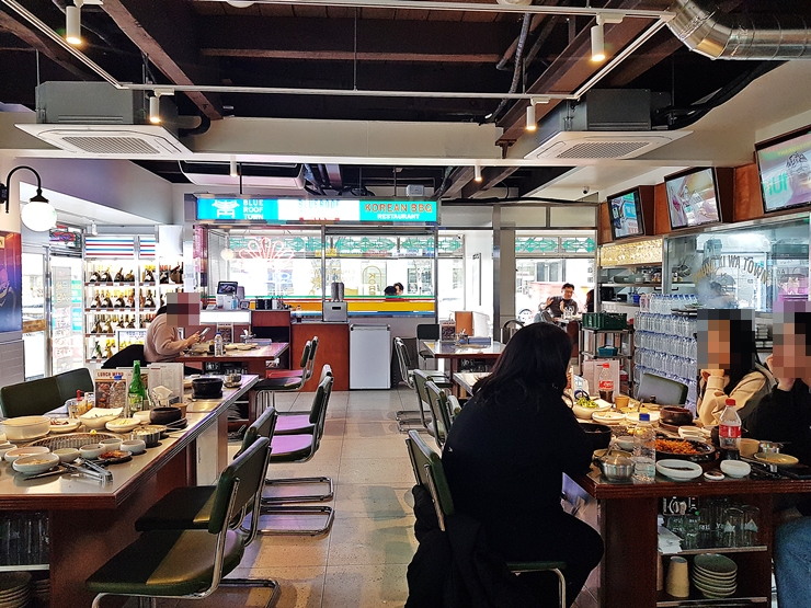 내부 모습. 프랜차이즈답게 내부는 어느 지점을 가더라도 대동소이한 분위기다. 이 사진을 찍은 후 얼마 지나지 않아 바로 만석이 되었다. 어느 지점을 가더라도 인기가 많구나.점심이라서 그런지 고기를 먹는 고객들보단 순두부 찌개 같은 점심 단품 요리를 먹는 고객들이 많았다. 점심에 먹는 고기는 참 맛이 좋은데, 안타까웠다.
