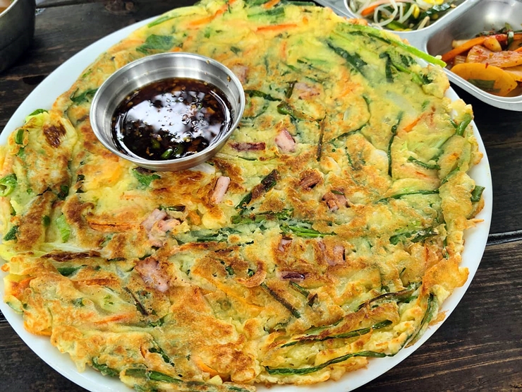 파전. 소량의 해물이 들어간 파전이다. 두툼한 스타일은 아니고 얇고 바삭한 스타일이다. 파전을 막걸리와 함께 먹고 있는 것을 쉽게 볼 수 있었는데 막걸리와 먹을 경우 더욱 만족도가 높을 수 있을 것 같다. 흑흑. 막걸리가 매우 고팠지만 꾹 참았다. 파전이 기대만큼 맛있지는 않았지만 가성비를 고려할 경우 괜찮은 맛이다. 담양 여행할 때 저렴하고 맛있는 멸치국수를 먹고 싶다면 추천한다.