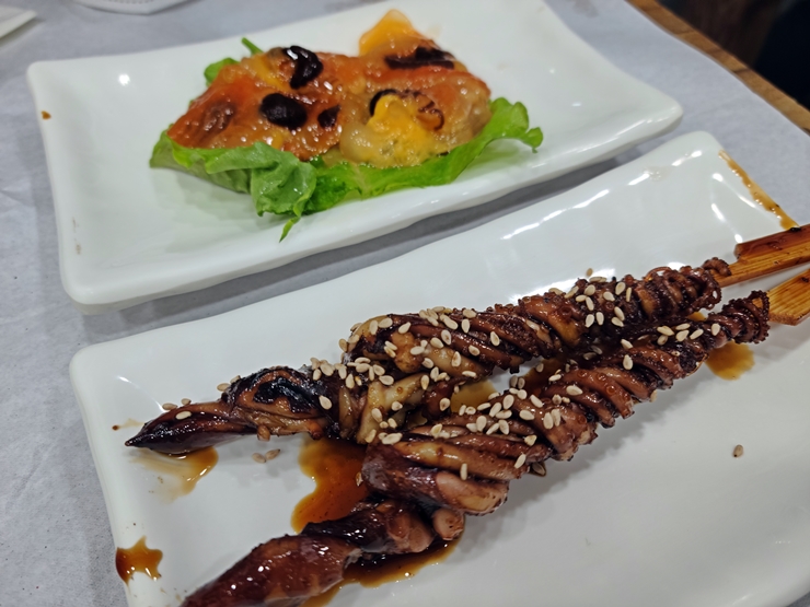 담양과 마찬가지로 밑반찬이 장난 아니다. 오징어 숙회, 갓김치, 멍게, 낙지 호롱 등이 나오는데 갓김치의 고향이라 할 수 있는 여수라서 그런지 갓김치 맛이 훌륭했다. 서울에서 맛볼 수 있는 갓김치와 차원이 전혀 다르다는 느낌을 받았다. 어릴 때는 갓김치의 톡 쏘는 맛 때문에 기피했던 김치인데 이제는 없어서 못 먹는다.