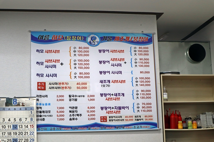 갯장어, 붕장어와 새조개 등을 판매한다. 갯장어는 하모, 붕장어는 아나고로 불리는데 장어에 대해서는 내가 잘 모르는 편이니 자세한 설명은 생략하도록 한다.