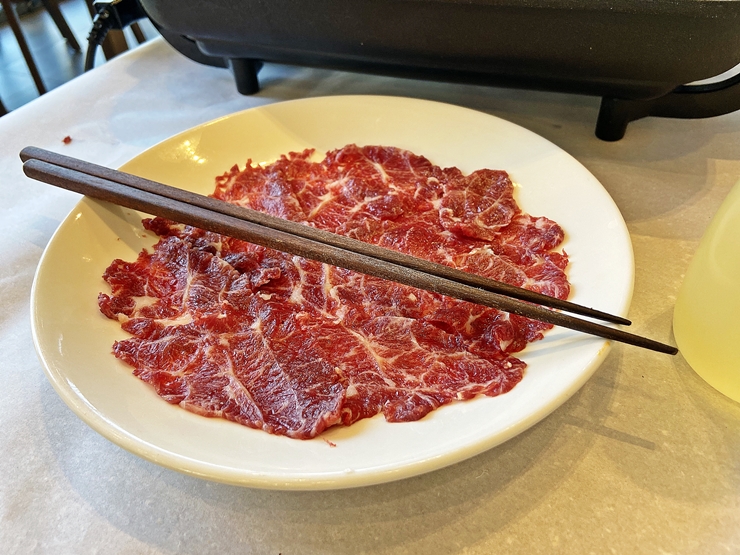 잘 익은 육전. 육전은 따뜻할 때 먹어야 제 맛이지. 그러니 식기 전에 빠르게 먹어야 한다. 얇게 부친 육전이 의의로 제법 씹는 식감을 느낄 수 있다. 적당히 고소하고 적당히 기름진 맛이 식욕을 돋운다. 아롱사태로 육전을 만들면 이런 맛이 나는구나. 아. 진짜 술을 마시지 않은 것이 너무나 아쉽구나.