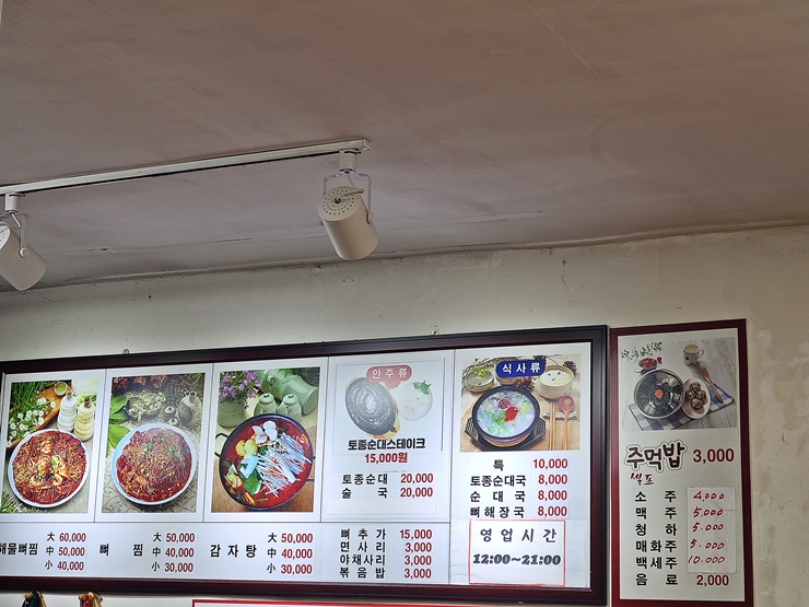 메뉴. 해물/뼈찜과 순댓국이 메인이라고 한다. 동기 녀석은 해물뼈찜보다 뼈찜이 맛있다며 적극 추천을 하였다. 처음 가본 곳에서 내가 고집을 피우는 것보다, 먼저 한 번 와본 동기의 말을 듣는 편이 안전하지. 그래서 뼈찜과 함께 소주를 주문했다. 오, 아직도 소주가 4천원이라니. 뭔가 모를 행복함과 기쁨이 밀려왔다.