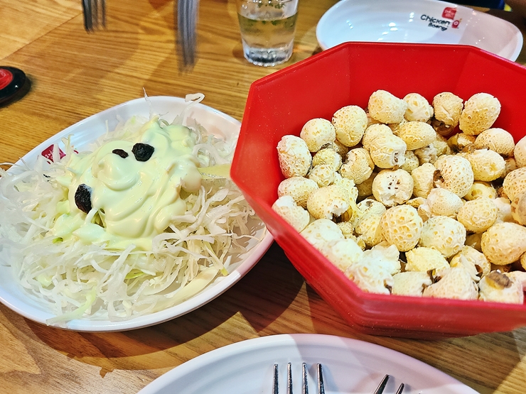 기본 반찬으로 나오는 사라다와 강냉이. 강냉이는 그냥 강냉이 맛이고 사라다는 사과 향이 살짝 느껴지는 소스가 뿌려져 있다. 요새 샐러드가 아닌 사라다를 많이 먹는 것 같네. 샐러드든, 사라다든 어찌 되었든 채소를 많이 먹는 것은 참으로 훌륭한 일이 아닐 수 없다.