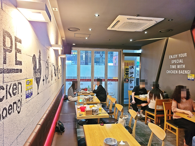 내부는 직사각형 형태의 매장으로 되어 있고 그리 넓지 않다. 제법 많은 고객들이 치킨과 함께 맥주, 소주를 즐기고 있었다. 아아, 참으로 보기 좋은 모습이 아닐 수 없다. 다들 이렇게 밤 늦게까지 술 마시고 안주도 많이 먹어서 나처럼 토실토실 살이 쪘으면 좋겠다. 나만 이렇게 넋 놓고 살 찔 수는 없지.