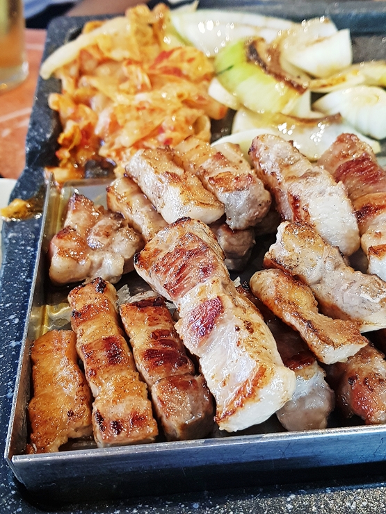 채소를 많이 먹으라는 짝꿍의 말을 잊지 않고 명이나물, 양파, 마늘을 비롯하여 상추와도 같이 고기를 먹었다. 고기는 고기만 먹을 때 그 맛을 제대로 느낄 수 있는 법이지만, 짝꿍의 말을 잘 들어야 한다. 그래야 건강을 잘 챙길 수 있고, 살도 덜 찌기 마련이다.