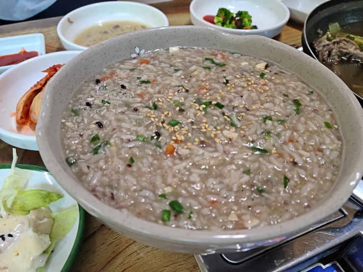 백숙을 거의 먹을 때 나온 죽. 죽 역시 맛이 뛰어났다. 술에 취해서 그런지 너 역시 화질구지구나. 이렇게 과음이 위험하고 좋지 않은 것이다. 앞으로 과음은 지양해야겠다.