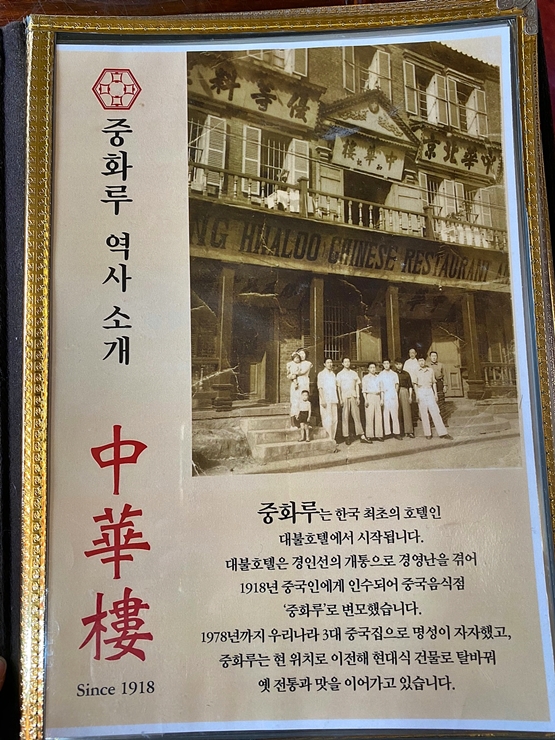 1918년부터 영업을 했다고 하니 역사가 100년을 훌쩍 넘긴 식당이다. 1978년까지 한국 3대 중국집으로 명성이 자자했다고 하는데, 그럼 지금은 3대 중국집에 포함이 안 되는건가 싶었다. 3대 중국집이든 뭐든 그런 것은 전혀 중요하지 않고 맛만 있으면 그곳이 맛집이다.