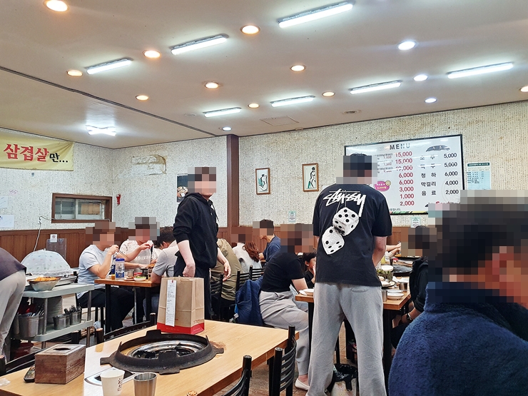 언제 방문하더라도 항상 고객이 많은 것이 특징이다. 고객이 많이 없을 때는 고기를 직접 구워주는데 고객이 많을 때는 직접 구워야 한다. 난 고기 굽는 것을 좋아하기 때문에 내가 직접 굽는 것도 좋지. 우리가 들어온 후에 얼마 지나지 않아 웨이팅이 생겼다.
