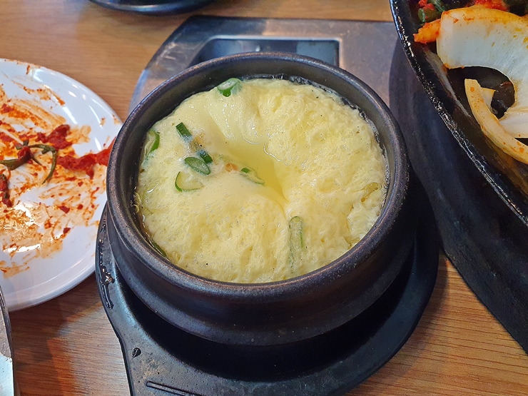 고기를 주문하면 기본으로 나오는 계란찜. 수분이 많은 계란찜이지만 이렇게 기본으로 나오는 것으로도 참 감사할 일이다. 이 계란찜도 고기를 따라갈 수 없지만 그래도 훌륭한 소주 안주라고 할 수 있다.