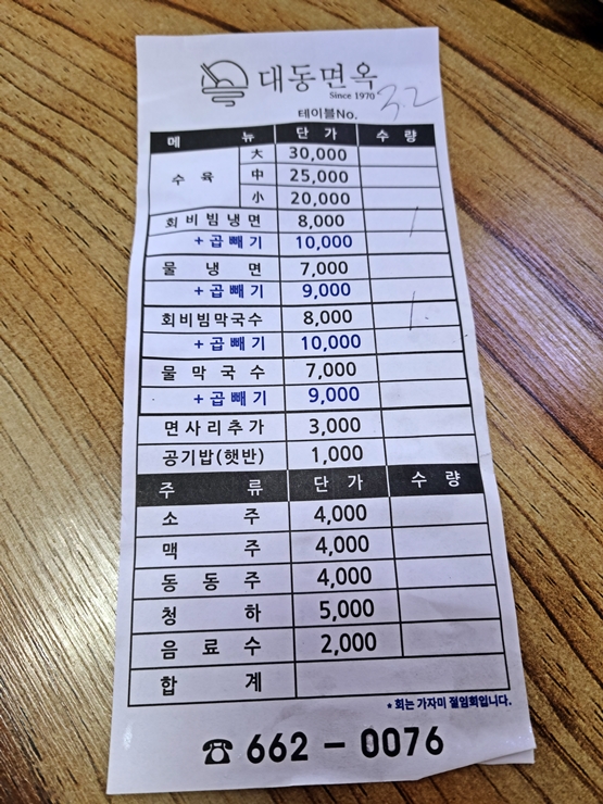 점심이기도 하고 서울로 복귀를 해야 하니 간단하게 막국수만 먹기로 결정했다. 옆 테이블에서 수육을 참 맛있게 먹는 모습을 보고 있으니 괴로웠지만 눈물을 꾹 참고 주문을 했다. 수육은 다음 기회에 먹도록 해야지. 가게 내부에는 워낙 많은 고객들이 있어서 사진을 찍지 못했다. 지금 생각하니 좀 아쉽네.