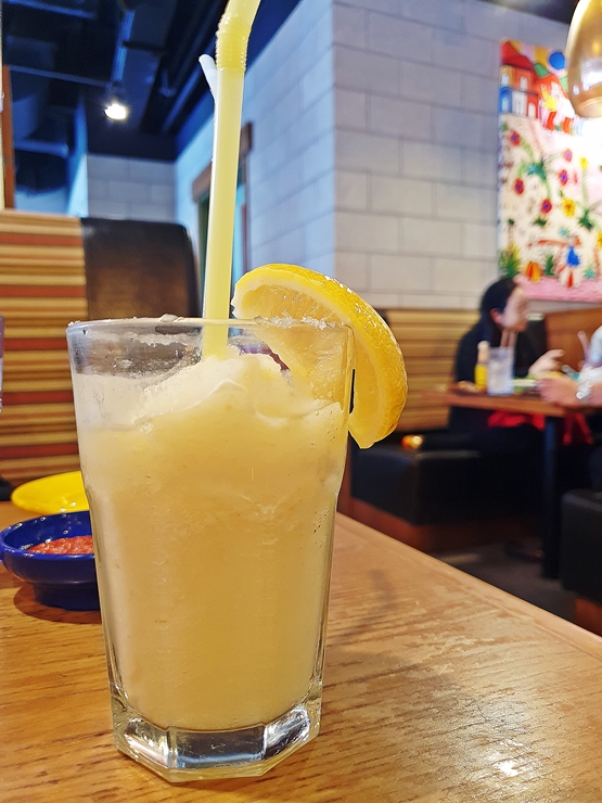 논 알콜 마가리타. 마가리타는 스트로베리, 피치, 망고와 진저라임 중 하나를 고를 수 있는데 짝꿍은 진저라임을 골랐다. 살짝 한 모금 마셔보니 내 입에는 너무 시어서 딱 한 모금 마시고 모두 짝꿍에게 양보했다. 짝꿍은 맛있게 마시며 내가 못 마실 걸 알고 주문했다고 한다. 이런 모오옷된.