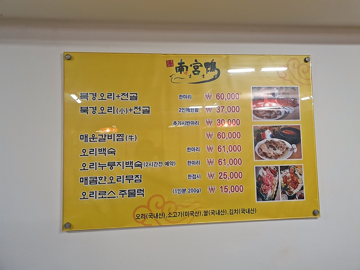 예전에 방문했을 때보다 가격이 소폭 상승했다. 가격이 오르긴 했지만 오리 한 마리와 전골을 6만원에 먹을 수 있으니 그리 비싼 가격은 아니지. 일단 오리 한 마리와 전골을 먹은 후 양이 부족하면 오리무침을 주문하기로 했다. 그러고 보니 항상 오리백숙을 먹어 보자고 했는데 오리백숙은 이번에도 안 먹었구나.