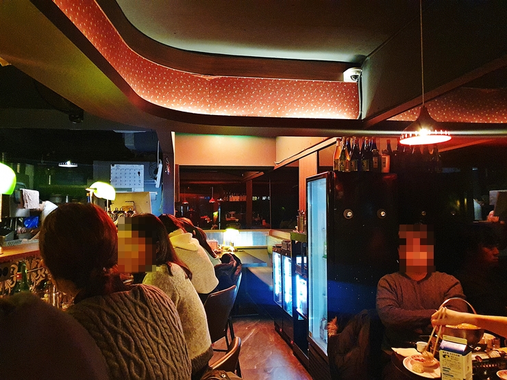 매장은 그리 넓지 않다. 평일 저녁임에도 불구하고 딱 두 자리를 제외하고 전부 고객이 앉아 있었다. 테이블은 두 개 정도 있었고 나머지는 전부 바 형식으로 되어 있다. 우리는 웨이팅 없이 남아 있는 바에 앉았지. 고객들이 많이 있지 않았지만 제법 활기찼던 것 같다. 몇 년 전부터 뜨고 있는 샤로수길이라서 그런 것 같다. 나 대학 다닐 때는 샤로수길이란 말은 없었는데.
