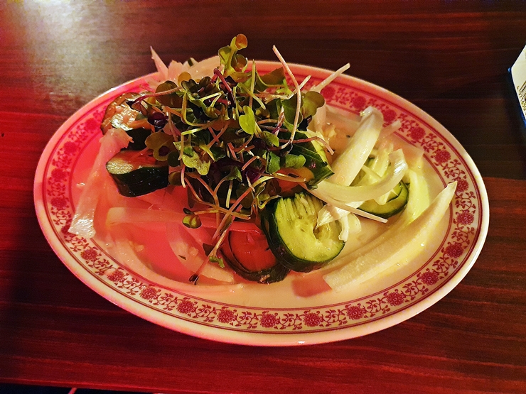 중화오이냉채. 난 파이황과를 굉장히 좋아하는데 파이황과가 나올 것 같아서 주문한 것이다. 일반적인 파이황과의 모습과는 좀 다르지만 맛은 얼추 비슷했다. 오이는 호불호가 극단적으로 갈리는 식자재인데, 나에게는 호에 가깝다. 동기 녀석은 이 중화오이냉채를 잘 먹지 않더군. 그래서 내가 맛있게 냠냠 다 먹었다. 후후후.
