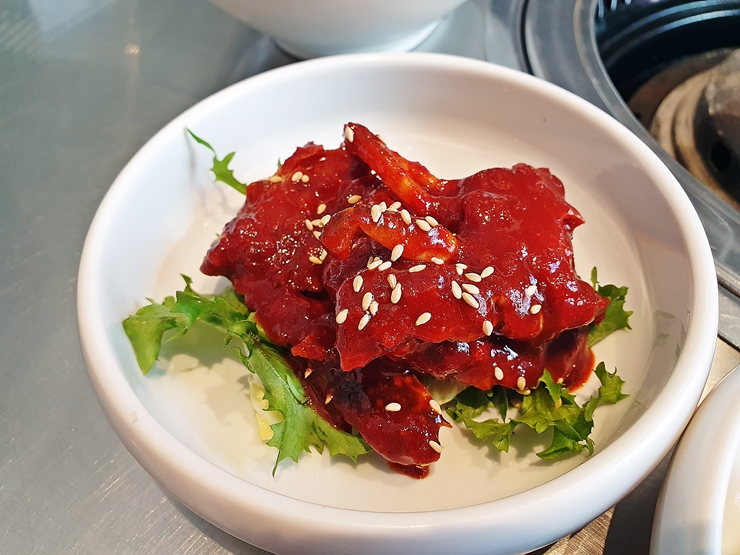 지난 번에 비해 맛있다고 느낀 양념게장. 난 게장은 간장게장을 선호하는 편인데, 이날 양념게장은 참 맛있게 먹었다. 리필을 하게 될 경우 그만큼 고기를 많이 먹지 못하기 때문에 리필은 하지 않았다. 역시 고기 앞에서는 언제나 진지하고 신중한 자세를 갖춘 멋진 나.