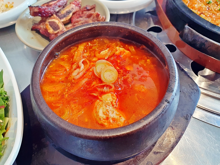 아름다운 모습의 LA 양념갈비. 갈비는 크게 나오는데 즉석에서 가위로 썩둑썩둑 보기 좋게 썰어준다. 청기와타운의 장점 중 하나는 고기를 직접 구워준다는 것이다. 난 고기 굽는 것을 좋아하는 편이라서 고기를 구워주지 않는 곳에 가면 내가 직접 고기를 굽는 편인데, 이렇게 고기를 구워주는 곳에 가면 순순히 가위를 양보하는 편이다.