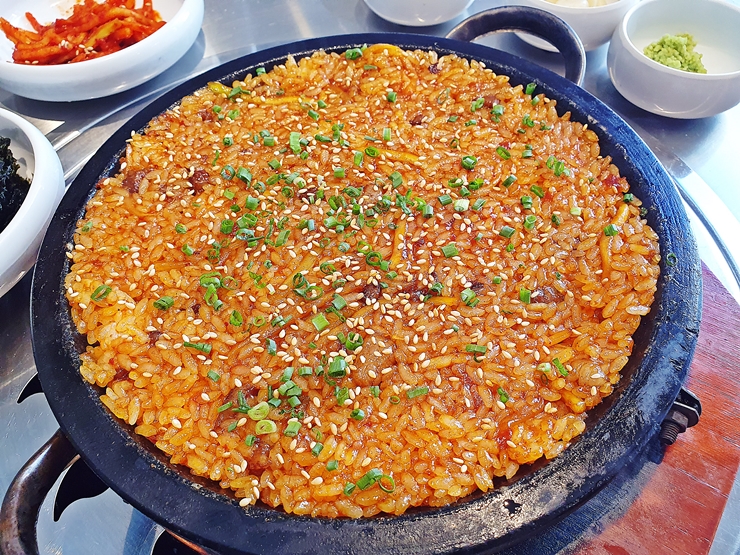 무생채볶음밥은 돌판에 볶아 나오기 때문에 쉽사리 온기가 가지 않는다. 그래서 뜨거운 음식을 잘 먹지 못하는 사람은 충분히 식혀 먹어야 한다. 비주얼은 매콤하게 생겼지만 전혀 매콤하지 않다. 달달하지만 입 안의 느끼함을 잘 씻어주는 그런 볶음밥이다. 서울교대 근처에서 맛있는 양념갈비와 볶음밥을 먹고 싶다면 한 번 방문할 것을 추천한다.