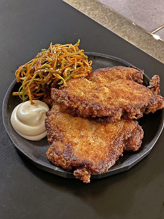 일반적인 식용유를 사용하지 않고 버터를 이용해서 부쳤다는데 고소한 맛이 일품이었다. 함께 나오는 마요네즈에도 살짝 찍어 먹어봤는데 좀 느끼해서, 파절이와 같이 먹었다. 파절이와 같이 먹으니 느끼한 맛을 잘 잡아주고 입맛을 돋우는 효과가 있어 끊임 없이 먹을 수 있었지. 역시 고기는 언제 어디서 누구와 어떻게 먹어도 참으로 옳은 식자재라고 할 수 있다. 동기 녀석과 하하호호 잘 즐기고 기분 좋게 집에 들어갔다. 양재동에서 세련된 분위기 속에서 맛있는 고기 요리를 먹고 싶다면 한 번 방문할 것을 추천하는 곳이다.