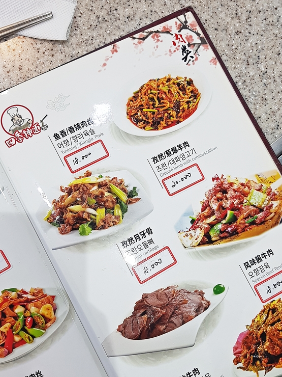 마라롱샤로 유명하지만 쯔란 대파 양고기, 향라 대하, 깐궈 명란과 오향장육 등도 인기가 높다고 한다. 양고기는 내가 가장 좋아하는 고기이기 때문에 꼭 맛을 봐야지. 인원이 많기 때문에 즈란 대파 양고기, 감자채 볶음, 깐궈 명란과 두부 볶음을 주문했다. 다들 매운 음식을 잘 먹지 못해서 그런지 마라롱샤를 먹자고 한 사람이 한 명도 없었다. 나도 매운 음식을 잘 먹지 못하니 마라롱샤를 먹지 않아도 괜찮다.