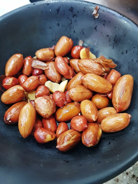 음식을 주문하고 술을 주문하니 볶은 땅콩을 기본 안주로 제공했다. 살짝 짭짤하게 간이 되어 있는 볶은 땅콩은 저절로 손이 가는 훌륭한 술 안주가 아닐 수 없다. 땅콩을 많이 먹게 되면 다른 음식을 충분히 먹지 못하기 때문에 적당히 먹어야 한다. 또한 기름기가 많아 많이 먹으면 살이 찐다. 이런 땅콩은 한 두 개만 집어 먹고 과감히 일행들에게 양보했다. 역시 자기 조절을 잘 하는 멋진 나.