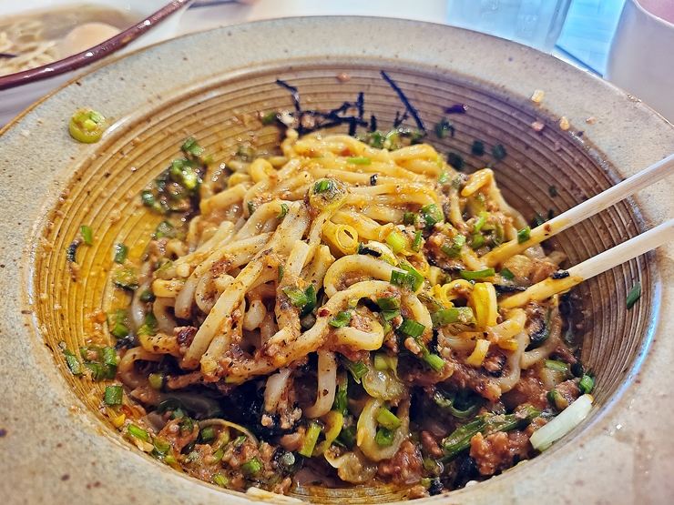 멘 마제. 일본식 비빔 국수라고 생각하면 이해가 쉽다. 멘 마제 또는 마제 소바는 그리 메이저한 음식이 아니었는데 갑자기 대유행을 탄 음식이다. 문래동의 경우 로라멘이 이 마제소바로 상당히 인기를 끌고 있기도 하다.