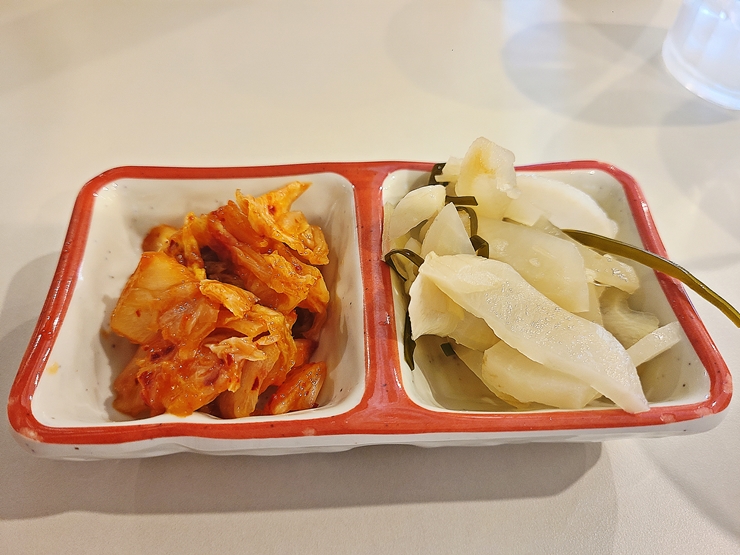 반찬. 반찬은 김치와 피클이 나온다. 뭐 특별할 것 없는 맛이다. 어딜 가더라도 쉽게 먹을 수 있는 그런 맛이라는 뜻이다. 예전 같았으면 이 김치를 안주 삼아 맥주 한 잔 마셨겠지만 이젠 술을 줄이고 있어서 꾹 참았다.