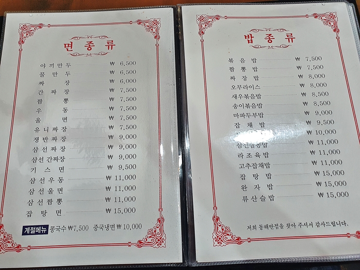 동해반점은 대림동에서 오랜 시간 영업을 한 곳인데 가게 내부에서 그 역사를 볼 수 있다. 사진은 없지만 특이하게 아직도 주판을 이용해서 셈을 한다. 주판은 아주 어릴 때만 봤고 그 이후로는 못 봤는데, 여기서 주판을 보다니 뭔가 신기하고 신선한 경험이었다. 어릴 때 주판을 이용해서 스케이트 타다가 혼나곤 그랬던 기억이 있다.