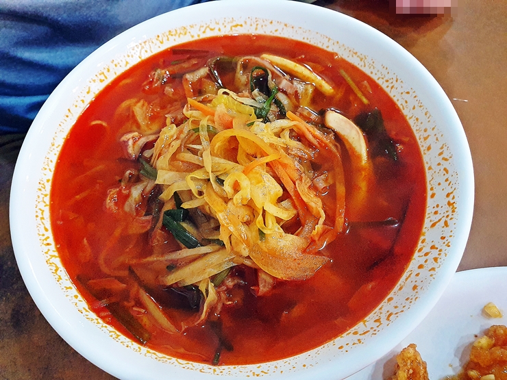 짬뽕. 동해반점 짬뽕의 특징은 육수가 굉장히 라이트한 것이다. 고기보다 채소를 많이 넣어 만든 육수는 고기 맛을 싫어하는 사람에게는 조금 감점이 될 요소이지만 맑고 개운한 맛이 특징이다. 또한 해산물의 향과 맛도 느낄 수 있다. 짬뽕 국물을 달라고 하면 더 주기 때문에 나도 따로 요청해서 잘 즐겼다.