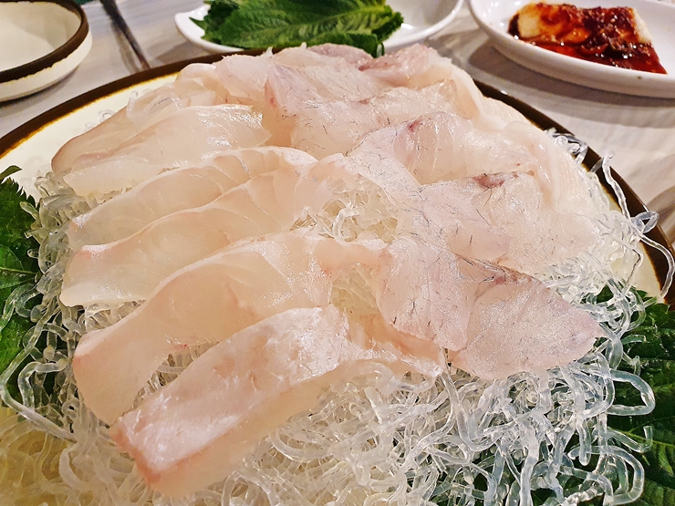 무안수산은 예약을 하지 않고 갈 경우 자리를 못 잡는 경우가 많다. 그래서 방문하기 전에 미리 예약을 하고 갔다. 예약이 다른 고객에 비해 늦어서 그런지 3호점으로 자리가 잡혔다. 1호점, 2호점, 3호점 모두 비슷하게 생겼기 때문에 어디에서 식사를 하든 그리 중요하지 않다. 무안수산은 1인당 35,000원부터 55,000원의 구성으로 되어 있다. 두 명이서 방문할 경우 가성비가 좋은 것은 35,000원 메뉴이고, 4명이 방문할 경우는 45,000원 구성의 메뉴를 즐기면 된다. 그 밖에 추가 요금을 지불하고 생선 구이를 추가할 수 있다. 먹거리가 많이 나오기 때문에 생선 구이를 극히 좋아하는 사람이 아니라면 굳이 추가를 추천할 필요는 없다.