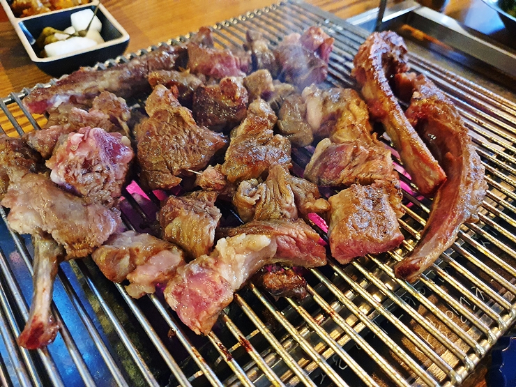 잘 익은 양갈비를 앞접시에 놓은 후 맛있게 냠냠. 숙성이 잘 되어 부드러운 식감이 일품이다. 역시 은은하게 양념이 되어 있는 것 같다. 진하진 않지만 확실하게 느낄 수 있는 풍미도 입 안을 감싼다. 역시 양고기는 언제 어디서 누구와 어떻게 먹어도 참 맛있게 먹을 수 있는 축복 받은 식재료라고 말할 수 있다.