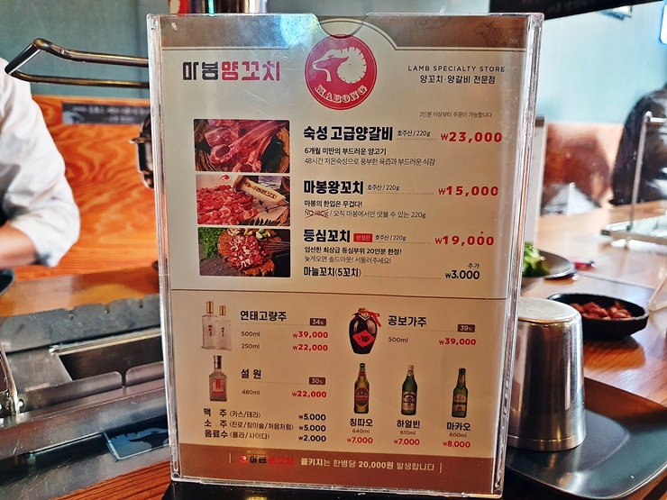 메뉴. 마봉양꼬치는 양갈비와 양꼬치를 메인으로 하며 꿔바로우, 가지볶음, 마라탕, 마파두부과 옥수수 국수 등을 판매하고 있다. 우리는 일단 양갈비 2인분과 블랙 꿔바로우라는 것을 주문했다. 꿔바로우는 이제 워낙 흔한 음식이 되었는데 블랙 꿔바로우라는 것은 처음 들어봤다. 과연 어떤 비주얼과 맛을 가지고 있는지 확인하고 싶었다.