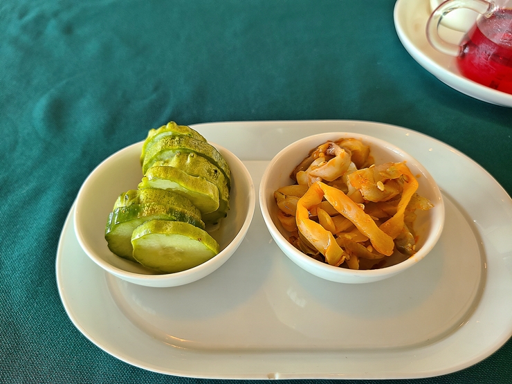오이 피클과 짜사이. 신기하게 단무지가 아닌 오이 피클이 나온다. 아삭거리고 상큼해서 입 맛을 돋우기 딱이었다. 개인 접시에 따로 제공하는 것도 마음에 들었다.