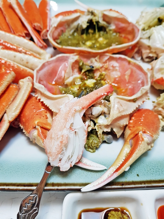 게 전용 도구를 써서 만족스럽게 냠냠. 역시 대게는 꽃게 맛을 따라올 수 없다. 그래도 대게 특유의 고소한 맛이 잘 느껴지는 것이 참 좋았다. 덕분에 오랜만에 게로 배를 꽉 채웠다.