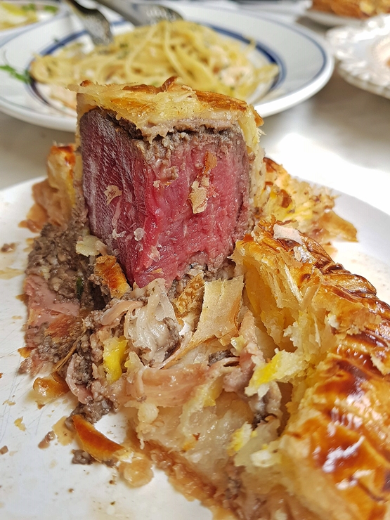 아름다운 비프 웰링턴. 세상에 이렇게 아름다운 모습이 또 있을까. 정말 고기가 들어간 음식은 언제, 어디서 누구와 보더라도 나를 황홀하게 만든다. 미디움 레어로 잘 익은 비프 웰링턴. 이제 성스러운 의식을 끝마쳤으니 신중하고 조심스럽게 음미해보도록 하자.
