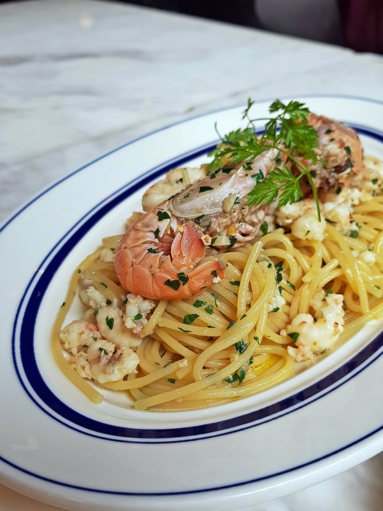 딱새우 오일 파스타. 제주산 딱새우를 사용해서 만드는데 감미로운 마늘 향이 식욕을 자극한다. 정석적인 오일 파스타의 맛이다. 기본을 잘 지켜서 흠 잡을 곳이 없다. 면의 익힘도 내 입에 딱 잘 맞았다. 탄수화물을 지양해야 하지만 언제나 말로만 지양하는 이기적인 나.