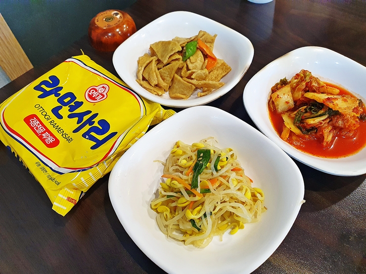 반찬. 부대찌개집에서 흔히 볼 수 있는 것들이다. 어묵볶음이 상당히 맛있어서 한 번 리필했다. 콩나물이나 김치는 평범한 수준이었다.