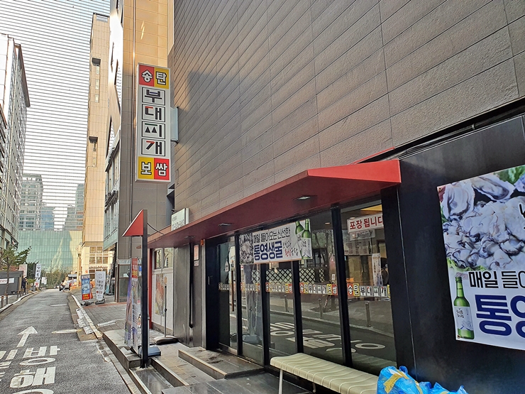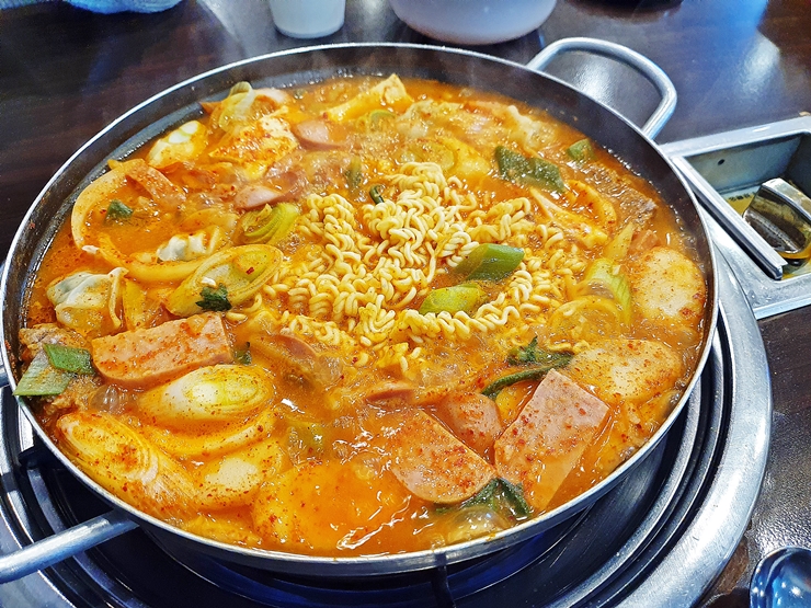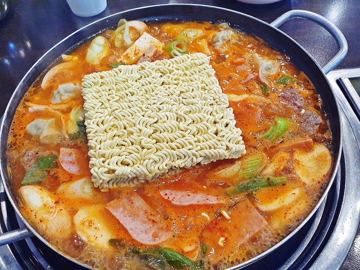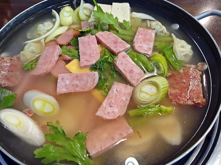 짝꿍과 함께 점심으로 무엇을 먹을까 고민을 하다가 부대찌개를 먹기로 했다. 부대찌개는 언제나 나의 소중한 친구. 요새 부대찌개에는 스팸이 아니라 런천 미트 같은 스팸 대용 프레스 햄을 넣는 곳이 많은데 송탄 부대찌개는 진짜 스팸을 넣어 만든다고 해서 갔다.