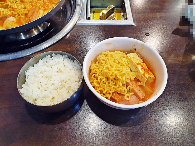 개인 접시에 덜어서 냠냠. 평소 같으면 라면 사리를 안 먹겠지만 이날은 밥을 먹지 않고 라면 사리를 먹었다. 과도한 탄수화물 섭취는 지양해야지. 런천 미트가 아닌 스팸이 들어가서 육수 맛이 굉장히 진하고 풍미가 깊다. 예전에는 부대찌개에 당연히 스팸을 넣었는데 물가 상승 등으로 인해서 이제는 스팸이 아닌 런천 미트 같은 것을 넣는 곳이 더 많아졌다. 상당히 서운하고 아쉬운 마음이 가득했는데 오랜만에 스팸이 들어간 부대찌개를 접하니 정말 기분이 좋고 뿌듯하고 보람이 찼다. 어느 하나 모나지 않은 모범적인 맛이다. 가격이 조금 높긴 하지만 진짜 스팸이 들어간 맛있는 부대찌개를 먹고 싶다면 한 번 방문해볼 것을 추천하는 곳이다.