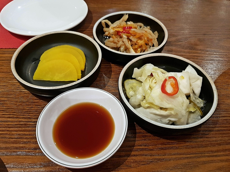 반찬. 한국 중식당이라면 어디서나 쉽게 볼 수 있는 단무지가 나오고 짜사이와 양배추 절임도 나온다. 일품 요리를 주문해서 즐길까도 잠시 고민했지만 이날은 가볍게 저녁을 먹기 위해 온 것이기 때문에 설레는 마음으로 한국인이라면 누구나 좋아하는 짬뽕, 간짜장, 꿔바로우와 함께 칭따오 한 병을 주문했다.