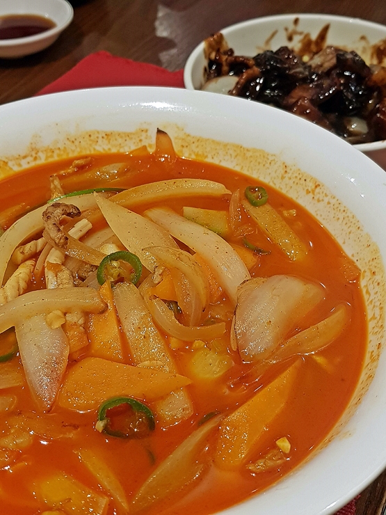 옛날짬뽕. 간혹 중식당에서 옛날짜장이나 옛날짬뽕을 보는 경우가 있는데 이 '옛날'이라는 시점이 대체 언제를 말하는 지 굉장히 궁금하다. 살짝 불향이 나면서도 칼칼한 짬뽕이었다. 짬뽕 맛도 나쁘지 않았지만 간짜장 맛이 워낙 훌륭했기 때문에 맛이 좀 가린 감이 있다. 옛날짬뽕이 아니라 삼선짬뽕을 주문했다면 만족감이 더 컸을 것 같아 살짝 아쉬움이 들었다. 수준 높은 프랜차이즈 중식당인 일일향. 한국인이라면 누구나 좋아할 짜장, 짬뽕과 탕수육 3종 세트를 먹고 싶다면 추천하는 곳이다.