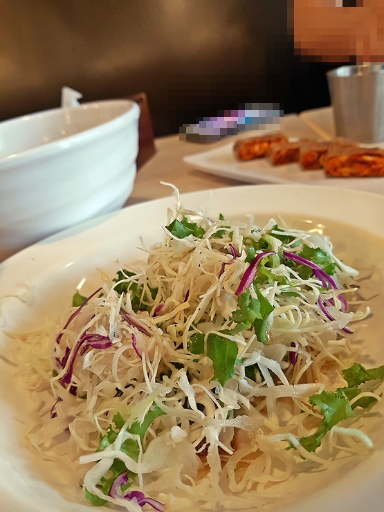 메밀 전병. 살짝 매워 보여 걱정했지만 의외로 고소했다. 메밀 전병은 정식에 포함된 메뉴로써 리필을 하려면 추가 금액을 내야 한다. 샐러드나 쭈꾸미를 먹으면 되기 때문에 굳이 리필할 필요는 없을 것 같고, 좋아하는 사람이라면 리필 해도 된다.