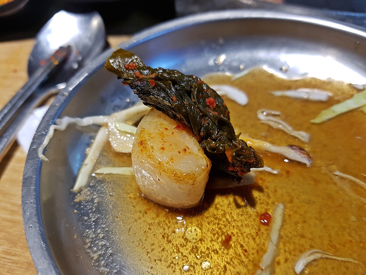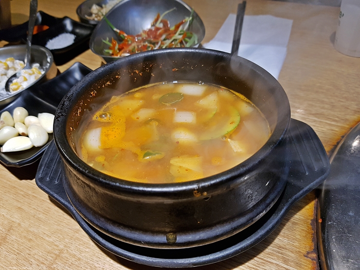 된장찌개. 기본으로 제공되는 반찬이다. 많이 짜지 않아서 마음에 들었다. 좋게 말하면 슴슴하고, 나쁘게 말하면 싱겁다, 약간은 취향이 갈릴 스타일이지만 나와 짝꿍에게는 잘 맞았다.