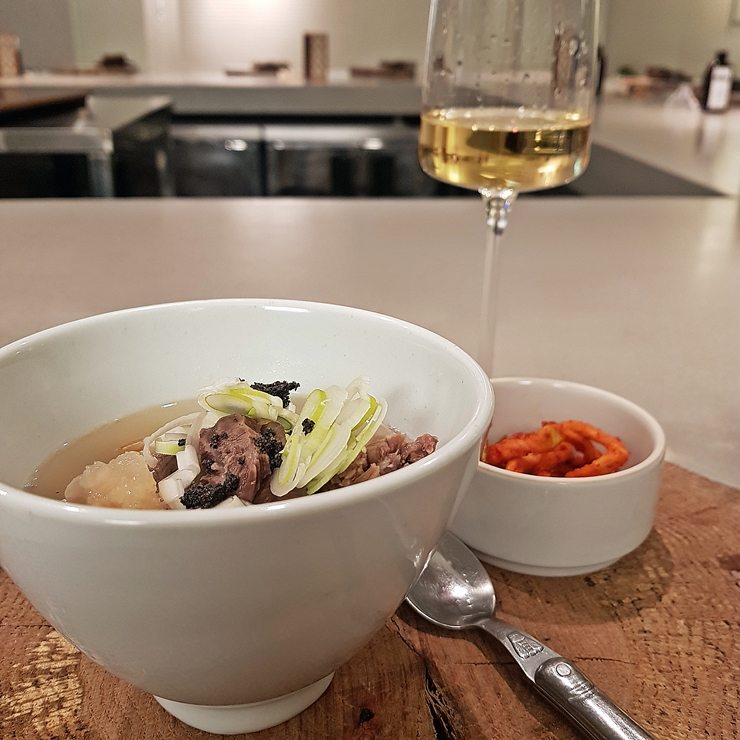 식사. 양지와 아롱사태를 이용해서 만든 곰탕이 나왔다. 진한 맛을 절제하고 깔끔한 맛을 잘 이끌어냈다. 진한 맛을 좋아하는 사람이라면 살짝 실망할 수도 있겠지만 깔끔한 맛을 좋아하는 사람이라면 만족도가 높을 곰탕이다.