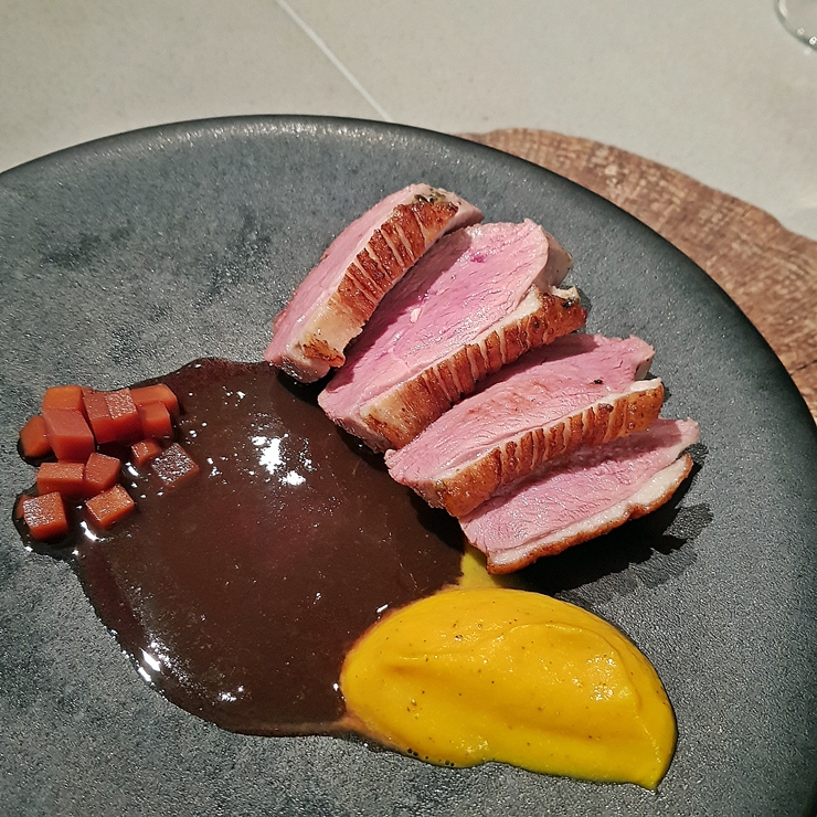 메인으로 삼겹살 혹은 오리 가슴살을 고를 수 있었는데 난 오리를 좋아해서 고민 없이 오리 가슴살을 선택했다. 오리 가슴살과 함께 당근퓨레, 오렌지 소스가 함께 제공된다. 오리 고기가 기름이 많은 고기이지만 기름기를 잘 조절해서 느끼한 맛을 줄이고 담백한 맛을 잘 이끌어냈다. 역시 오리는 언제, 어디서 먹어도 옳다.