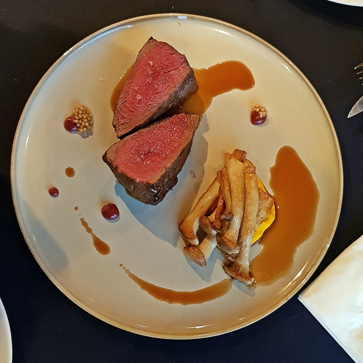 안심 스테이크. 비르 웰링턴과 더불어 레커의 시그니처 메뉴라고 한다. 미디엄 레어로 주문을 했는데 굽는 정도가 정말 예술이다. 비프 웰링턴과 겹치지 않을까 살짝 걱정을 했지만 기우에 불과했다. 고기는 다다익선이요, 거거익선이다. 부드럽게 잘 익은 안심을 먹기 좋은 크기로 잘 자른 후 냠냠. 역시나 기대에 어긋나지 않게 안심 본연의 맛이 잘 느껴진다. 간만에 안심을 배불리 먹으니 행복했다. 가니쉬가 살짝 빈약해보이지만 메인인 고기가 훌륭하니 가니쉬는 그저 가니쉬 그 자체에 불과하다. 분위기 좋은 곳에서 맛있는 음식과 와인을 즐기고 싶다면 한 번 방문할 것을 추천하는 곳이다.