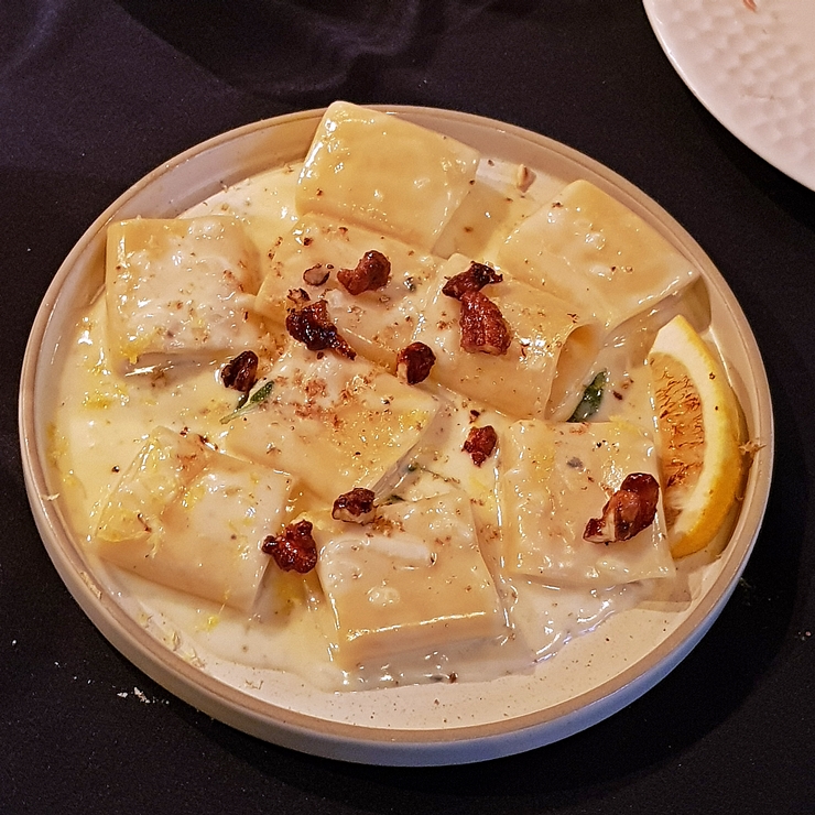 고르곤졸라 레몬 파케리. 파케리는 튜브 파스타인데 레가토니보다 더 지름이 큰 것이 특징이다. 고르곤졸라 소스가 굉장히 꾸덕하고 치즈향이 진하게 난다. 레몬 향이 살짝 느껴지는데 생각보다 많이 시지 않다. 레몬은 뒷맛을 잡아주는 역할이다. 이 날 오랜만에 굉장히 맛있는 파스타를 먹어서 기분이 좋았다.